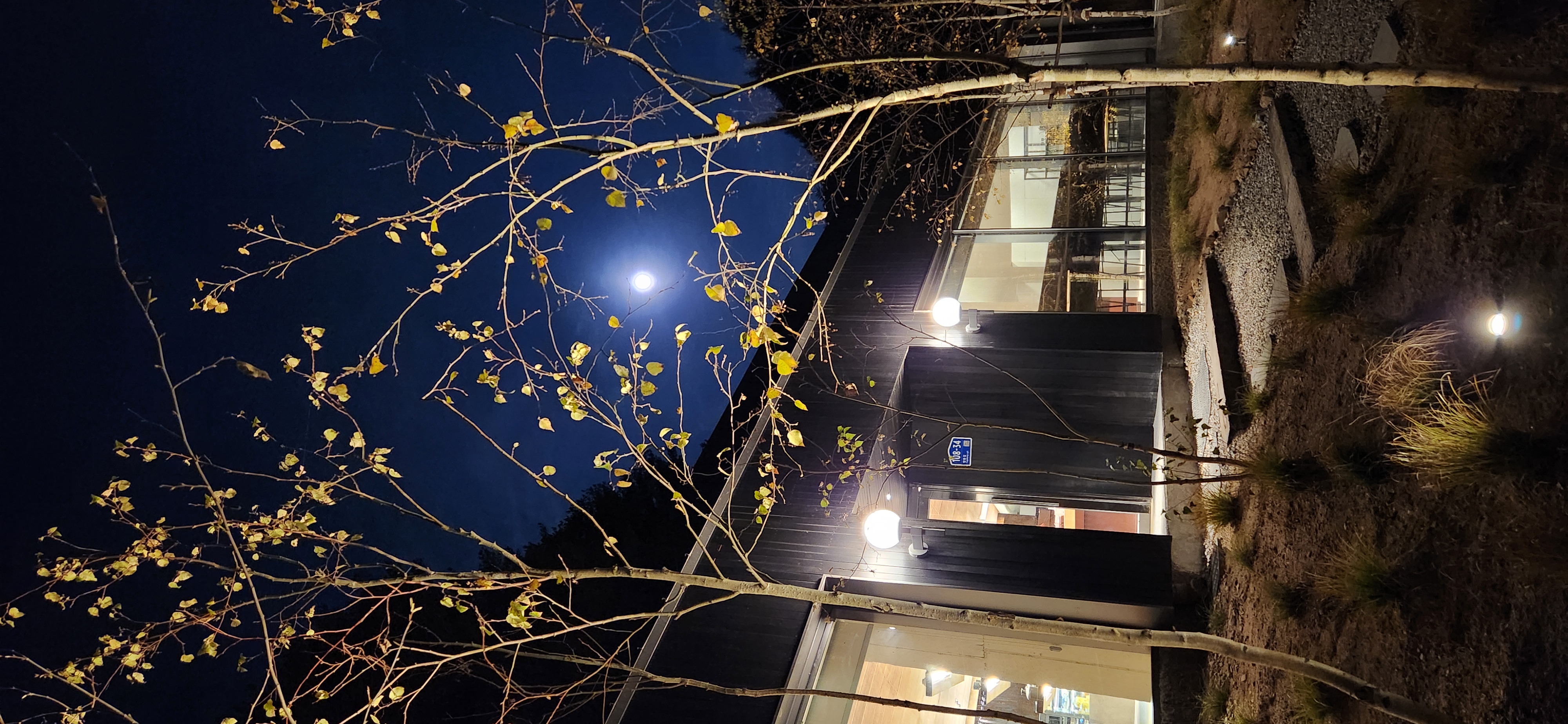 카페 레스토랑 위로 둥근 달이 떠오른 밤, 달빛과 두 개의 등불이 삼각형을 이루듯 서로를 비춥니다. 서늘한 가을 공기 속에서도 따스함이 번지는 이 순간— 서림원의 밤은 조용히 이야기를 건넵니다.